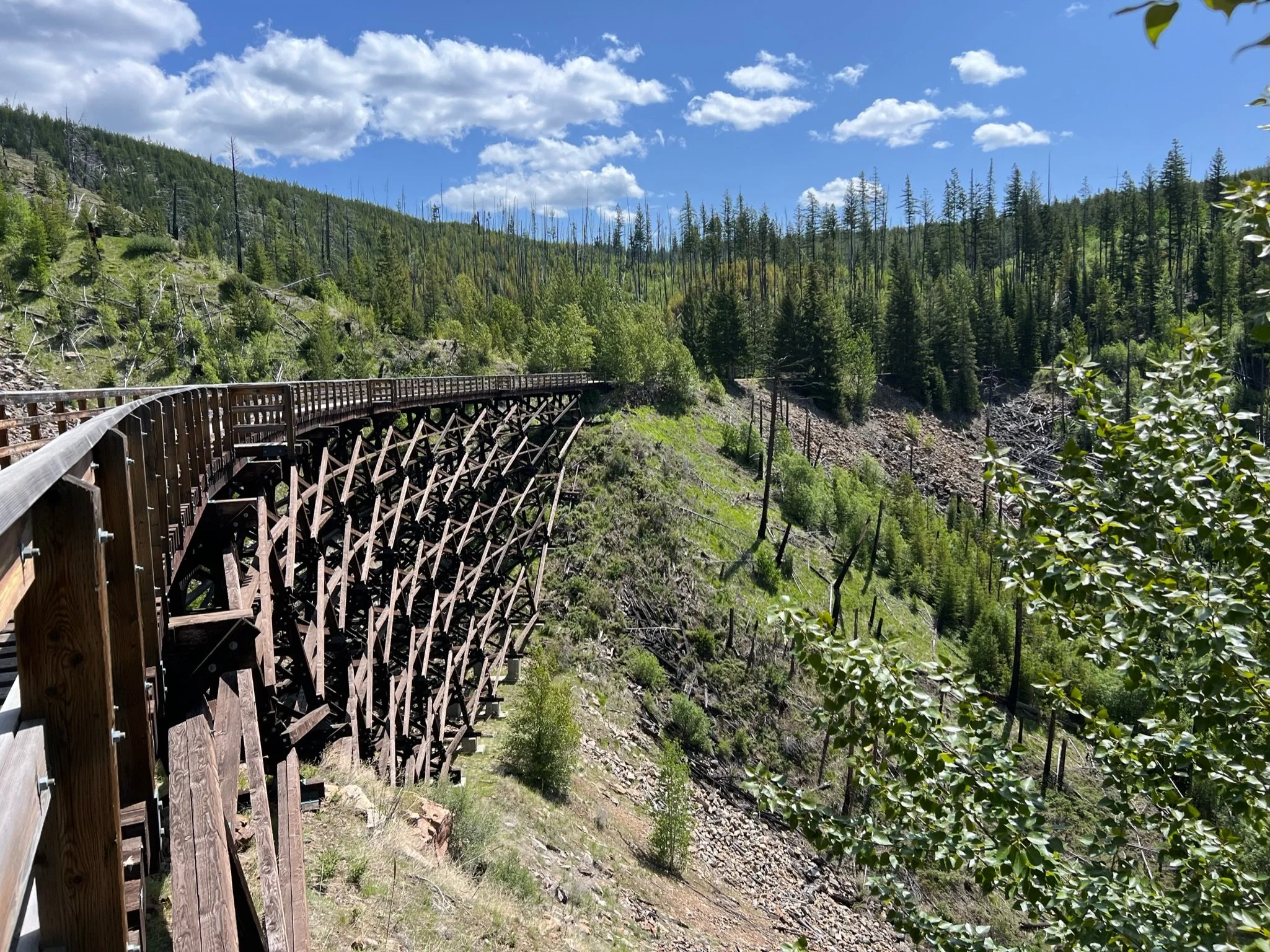 Myra Canyon Trestles Ride – Renting bikes from Myra Canyon Bicycle Rentals and riding the trestle portion of the the Kettle Valley Rail Trail, a scenic route featuring historic wooden trestle bridges and dramatic canyon views.