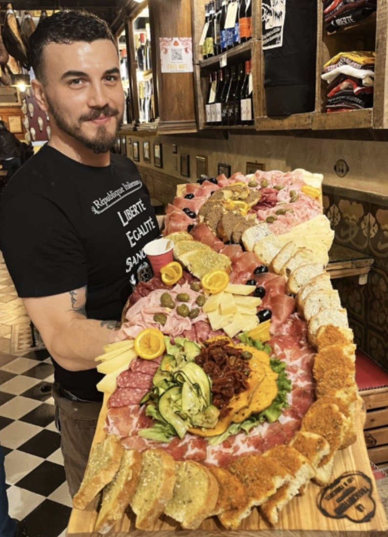 One of our favorite casual stops in Florence was La Prosciutteria, a lively spot specializing in large wooden boards piled with prosciutto, salami, cheeses, olives, and fresh bread. It’s an easy place to sample Tuscan cured meats and regional wine in a relaxed setting.
